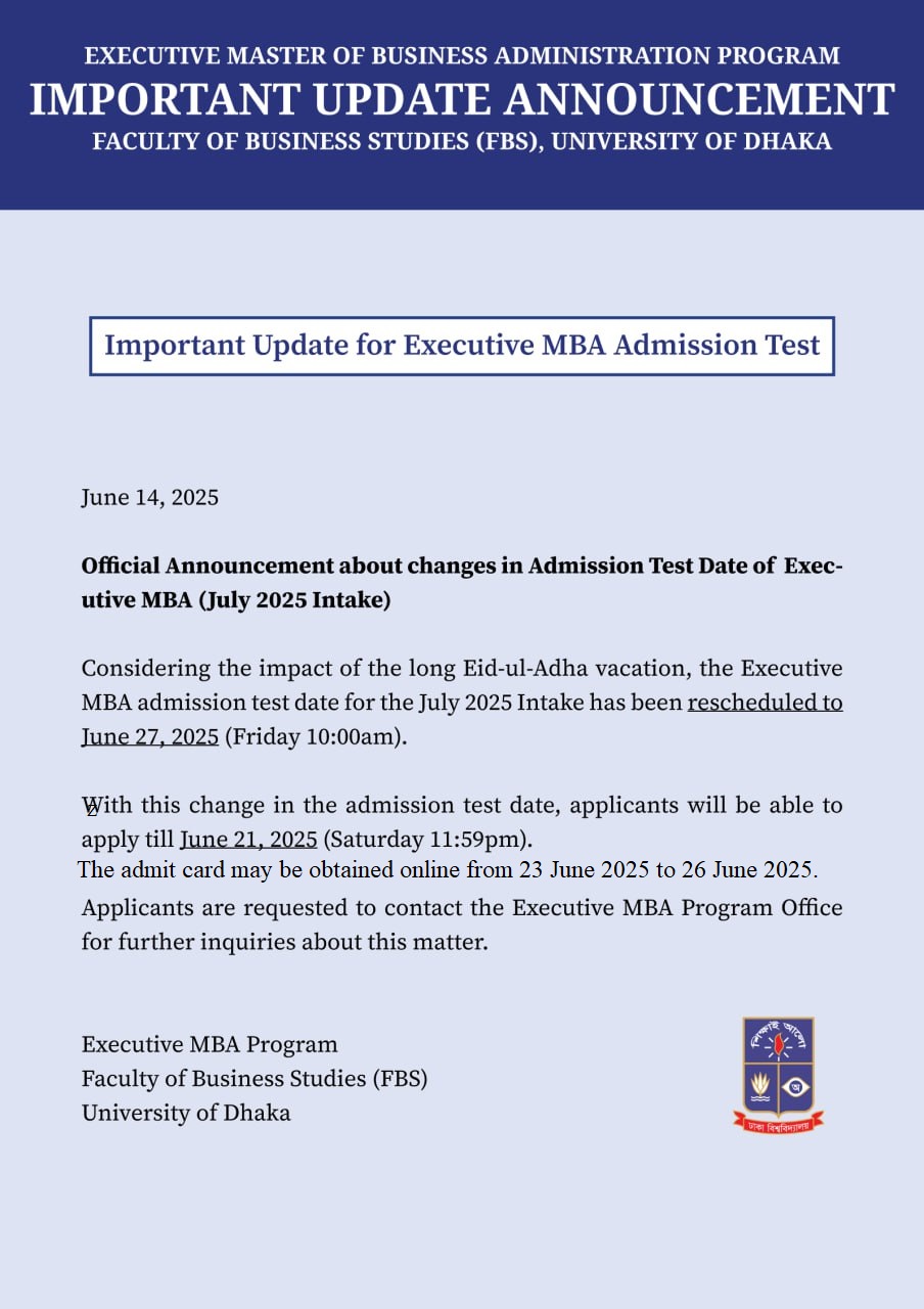 For any problem, please contact: Office of the Dean, Faculty of Business Studies,University of Dhaka, Dhaka-1000,